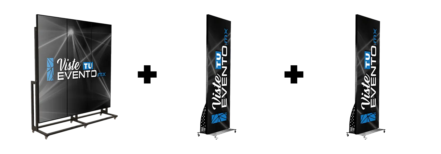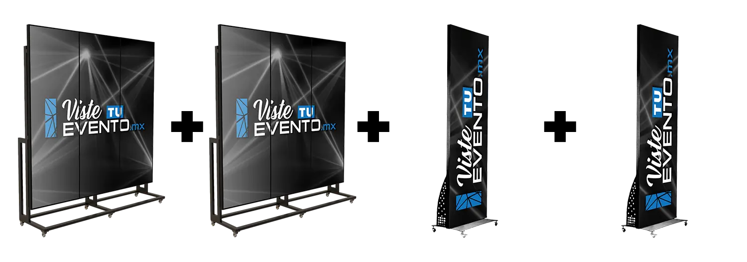- 2 Pantallas Triples en formato VIDEOWALL (Sobre base con ruedas).